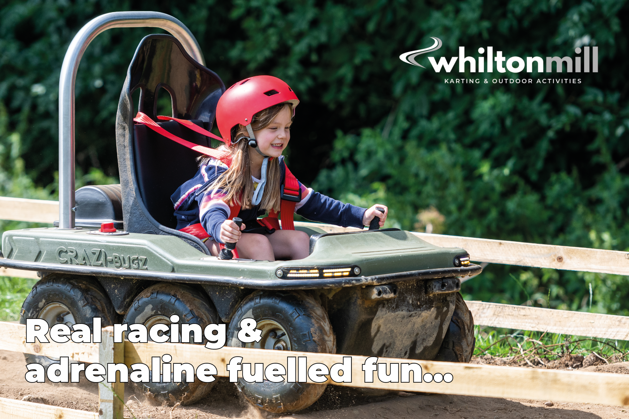 Our powered adventure play area features a log run, water splash, Whilton hills, tyre tunnel and exercise ball alley. The Crazi-bugz experience is ideal for young off-roaders aged 6 to 14, up to a maximum weight of 80kg. No previous experience is required. A full safety briefing is given on the day by our Outdoor Activity Manager.